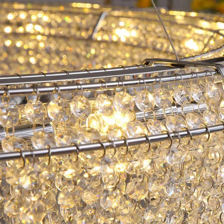 Notre grand lustre bateau de cristal est absolument magnifique et avec sa forme originale et pure : c'est un luminaire très fonctionnel en même temps qu'une véritable oeuvre d'art. Tout en cristal, avec juste une ossature en acier inoxydable, ce lustre est parfait pour décorer toute pièce à laquelle vous voulez ajouter du cachet et du raffinement avec une pointe de glamour.