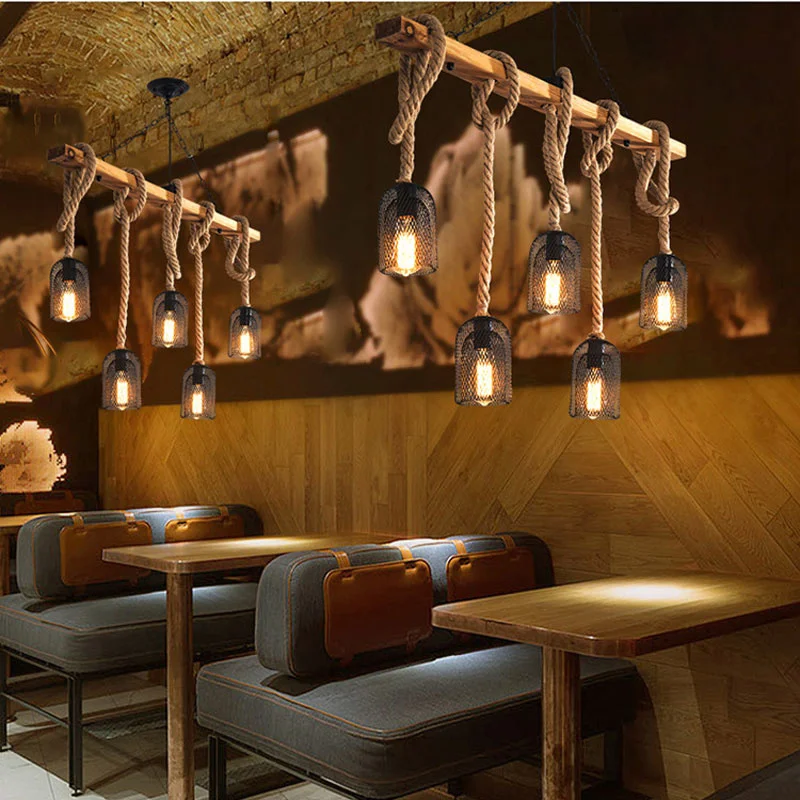 Ce superbe modèle en corde et en métal apportera une touche moderne et industriel à la pièce de votre choix. Plutôt grand, ce lustre sera idéal dans une pièce de vie, un séjour, une salle à manger ou une chambre. Cet élément de décoration changera radicalement l'apparence de la pièce dans laquelle vous l'installerez.