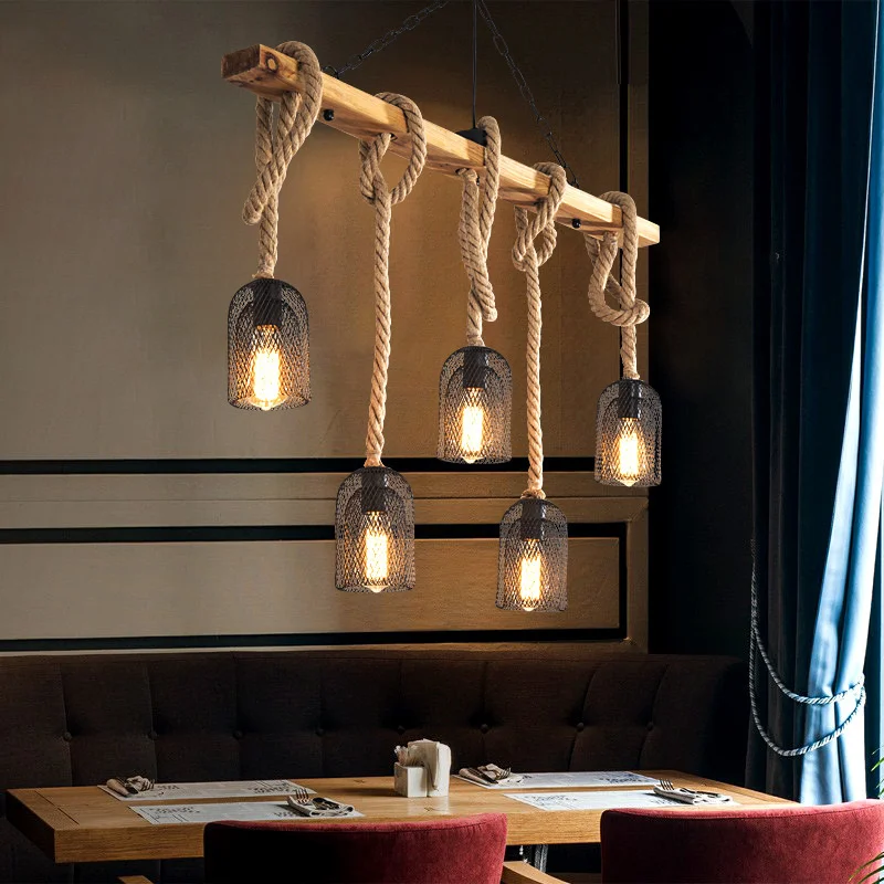 Découvrez ce fabuleux lustre industriel 5 branches corde et métal ! Chic et moderne, ce modèle en corde et en métal sera parfait pour distiller une agréable lumière dans la pièce de votre choix. Livré sans ampoules, vous pourrez choisir la couleur de lumière qui vous convient le mieux pour créer l’ambiance parfaite pour vous.