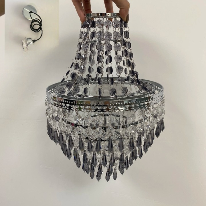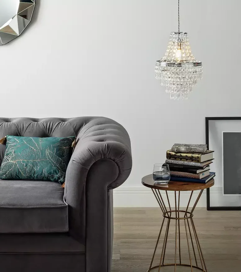Lustre à pampilles gris ou transparents