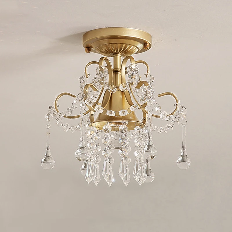 Les cristaux taillés captent la lumière de manière magnifique, créant un jeu de reflets et d'éclats qui illuminera votre espace de vie avec une ambiance chaleureuse et luxueuse. La structure en métal doré ajoute une touche de charme vintage à ce lustre, lui donnant un aspect intemporel et élégant. Son installation est facile et rapide.