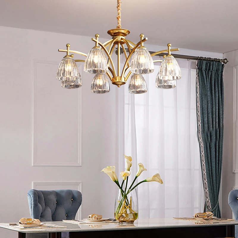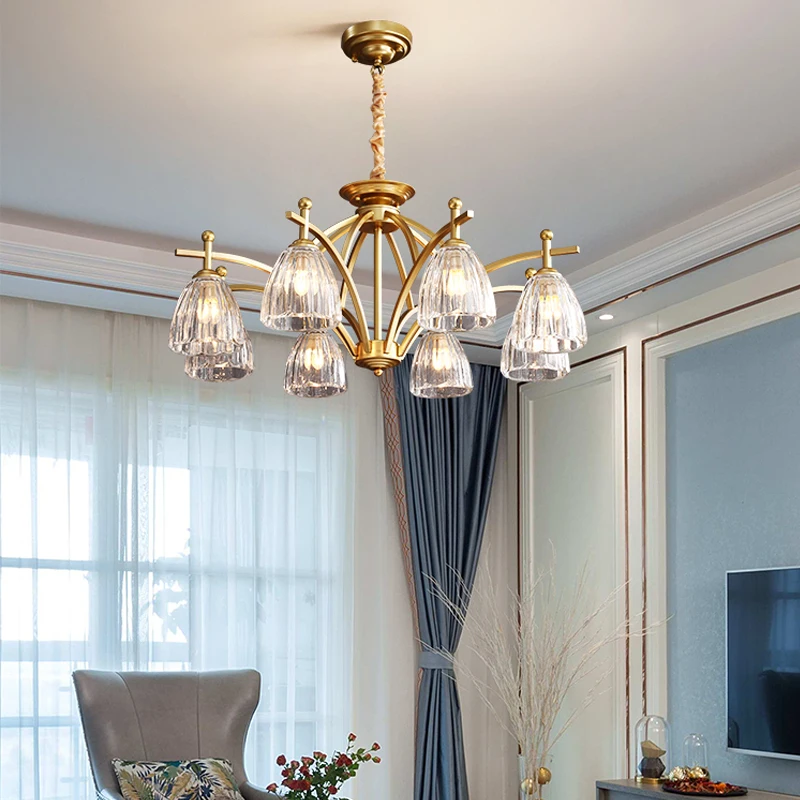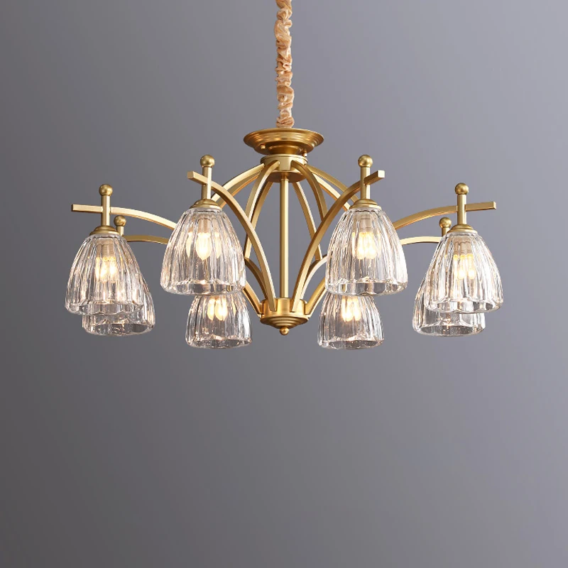 Ce lustre vintage est fabriqué à partir de matériaux de haute qualité sa structure en fer dorée et ses petits abats-jours en verre forment un ensemble aux lignes épurées avec des détails raffinés pour un lustre à l'élégance intemporelle. Vous pourrez choisir parmi deux couleurs d'ampoule, pour avoir l'intensité et la luminosité souhaitée afin de créer une ambiance visuelle qui vous ressemble.