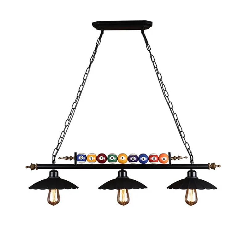 Ce lustre billard en métal noir est spécialement conçu pour être installé au-dessus d'une table de billard, offrant un éclairage optimal pour jouer dans les meilleures conditions. Les ampoules diffusent une lumière douce et chaleureuse, créant une ambiance conviviale et agréable. Disponible en deux dimensions, il ne vous reste plus qu'à choisir !