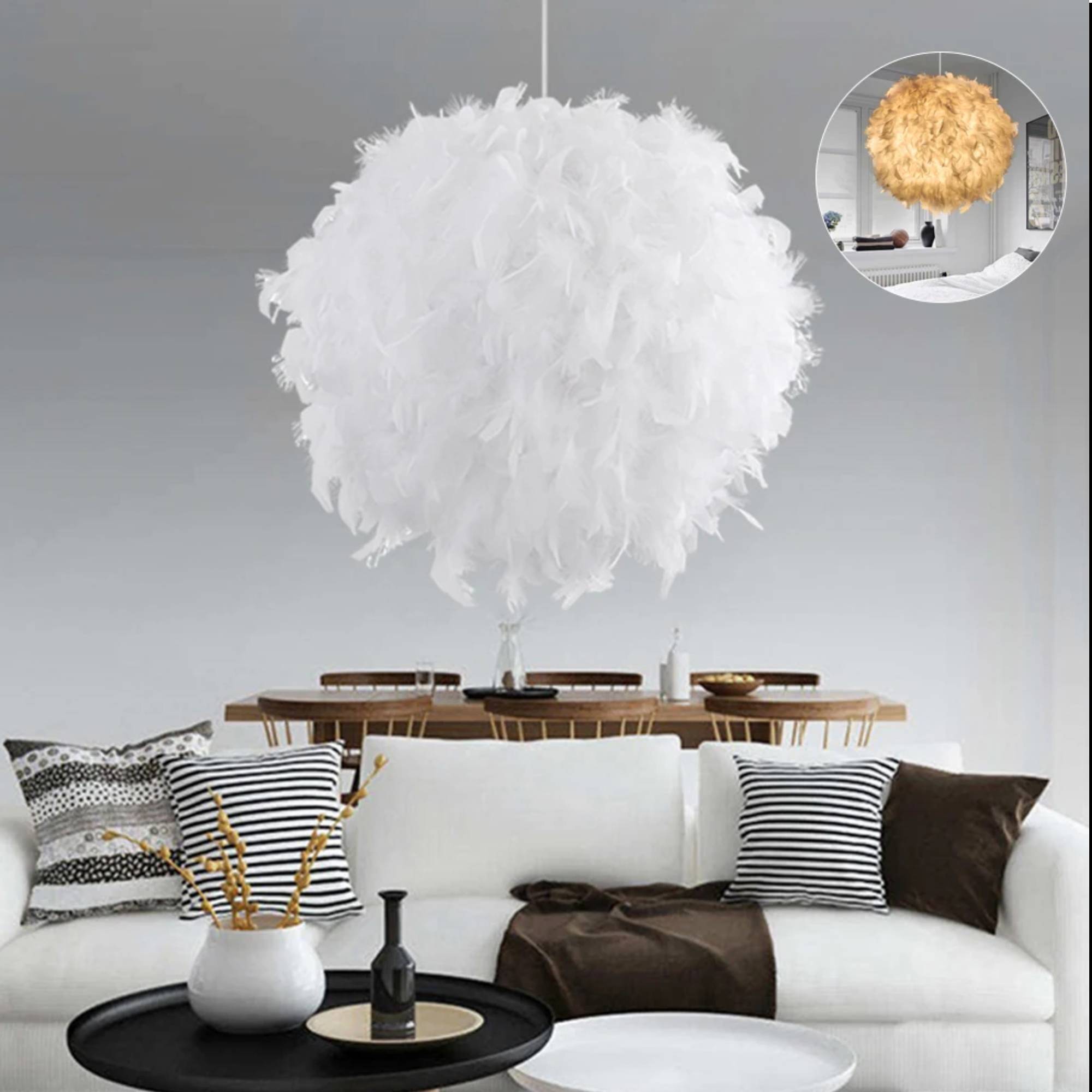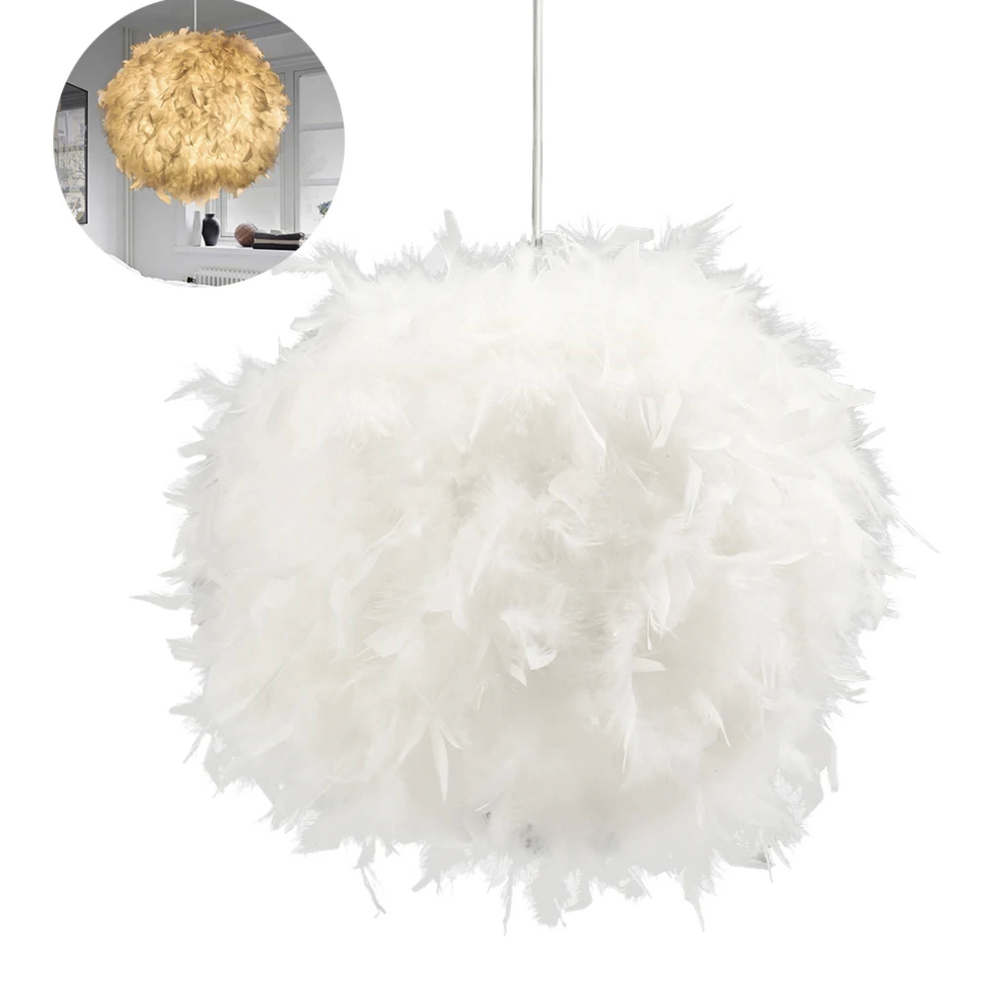 Lustre chambre plumes blanches