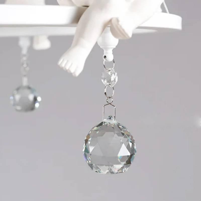 Ce lustre chandelier anges est fabriqué en métal de qualité avec des petits anges en céramique aux nombreux détails fins. Sous chaque ange se trouve un cristal taillé suspendu au bout d'un anneau. La couleur blanche apporte un côté contemporain et aérien, et l'allure générale donne un luminaire élégant empreint d'une grande sérénité, parfait pour un intérieur doux et relaxant.