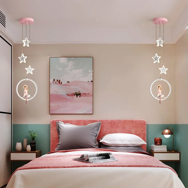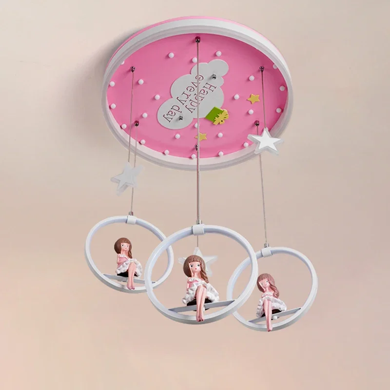 Les étoiles brillent délicatement dans l'obscurité, créant une ambiance apaisante et féerique. Les figurines, représentant des petites filles, qui ajoutent une dimension ludique et imaginative à la décoration de la pièce. Ce lustre est parfait pour stimuler l'imagination de votre enfant et lui offrir un univers enchanteur où il pourra rêver et s'évader en toute tranquillité.