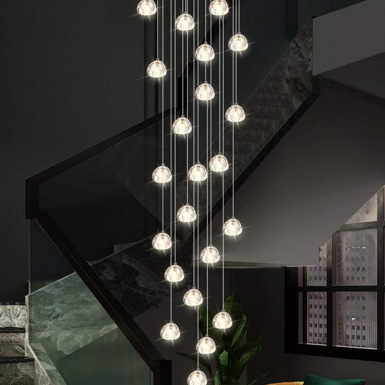 Lustre escalier boules en cristal