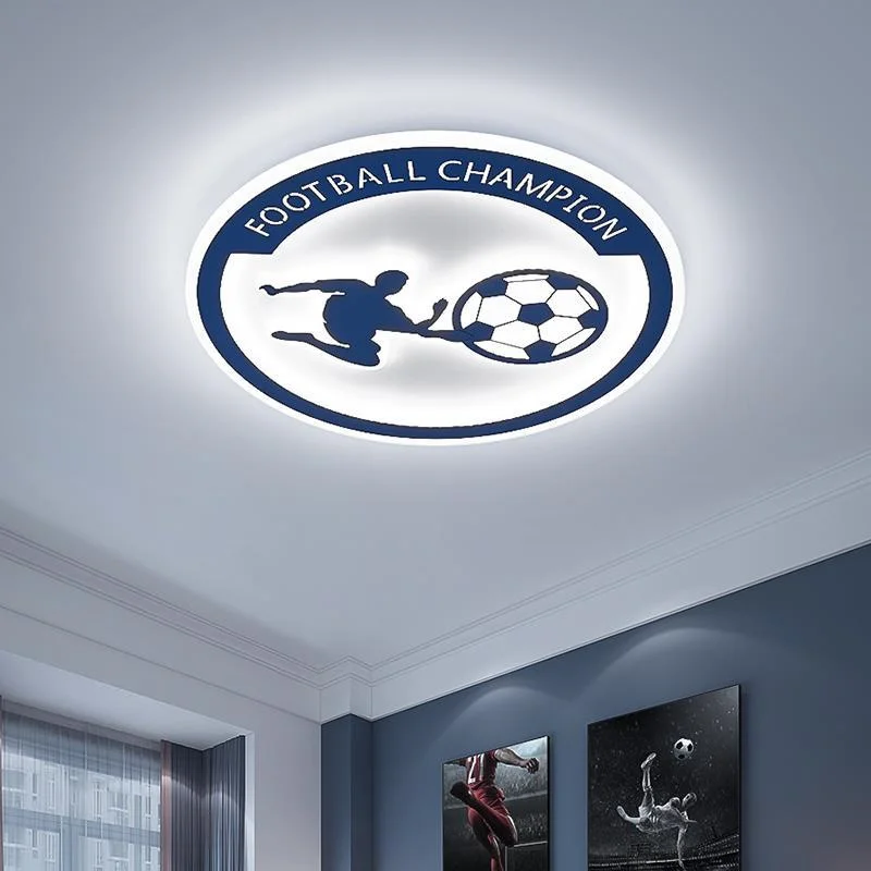 Découvrez ce beau lustre plafonnier football champion bleu et blanc ! Ce modèle moderne et tendance plaira à tous les garçons de 6 à 14 ans ! Original, moderne et très représentatif de leur univers, ce lustre plafonnier distillera une agréable lumière dans sa chambre et décorera subtilement les pièces les plus neutres !