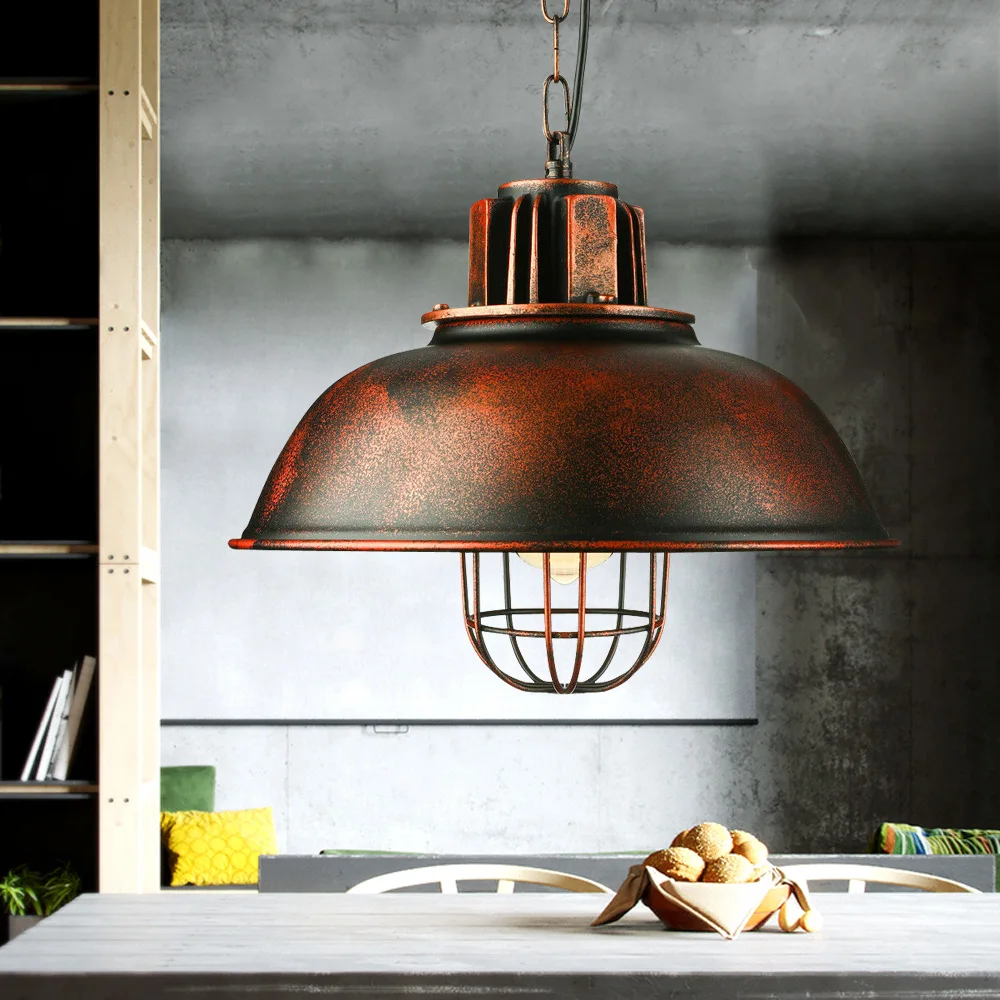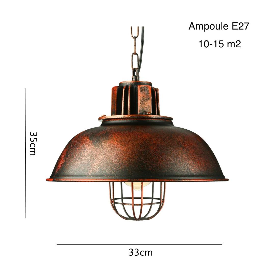 Ce lustre industriel rétro en fer est conçu à partir d'un design aux détails soignés qui le classent tout de suite dans sa catégorie. Sa couleur cuivrée ajoute encore un peu au style ancien tout comme la grille qui renfermera l'ampoule. N'étant pas incluse, vous la choisirez en fonction de vos goûts pour sa forme et la couleur qu'elle émet.