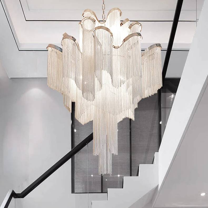 Lustre italien chaînes aluminium - Plage de prix : 839,90€ à 1.129,90€