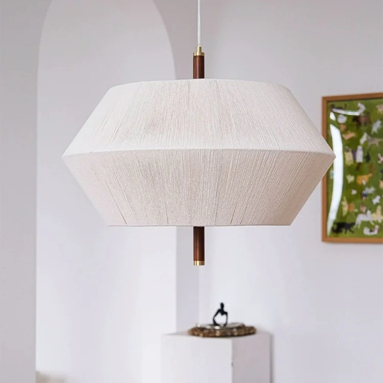 Ce lustre japonais en fils de coton est fabriqué en tissant les fils sur l'armature en métal et bois, résistant et durable. Le rendu est naturel, pur et apparaît comme une pièce de décoration simple et à la fois complexe. L'allure de ce luminaire fonctionnel est reposante et accueillante : il convient à toutes les pièces de votre intérieur en apportant un ressenti de calme et de quiétude.