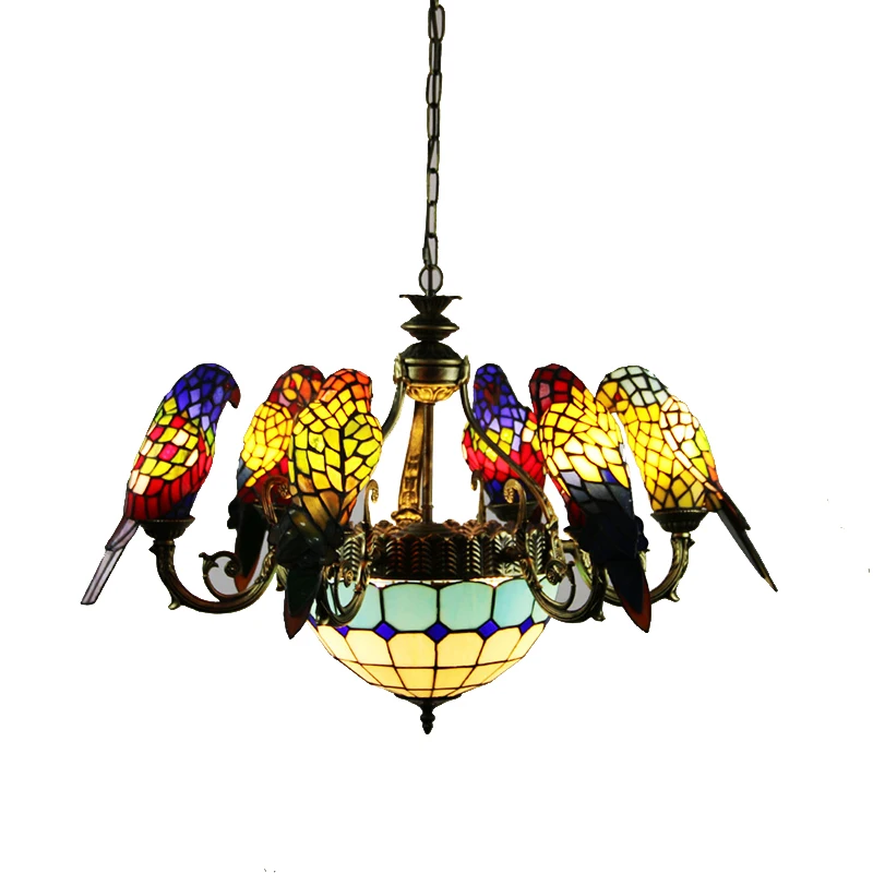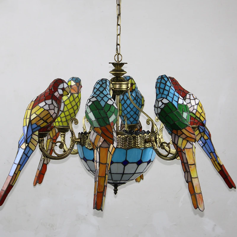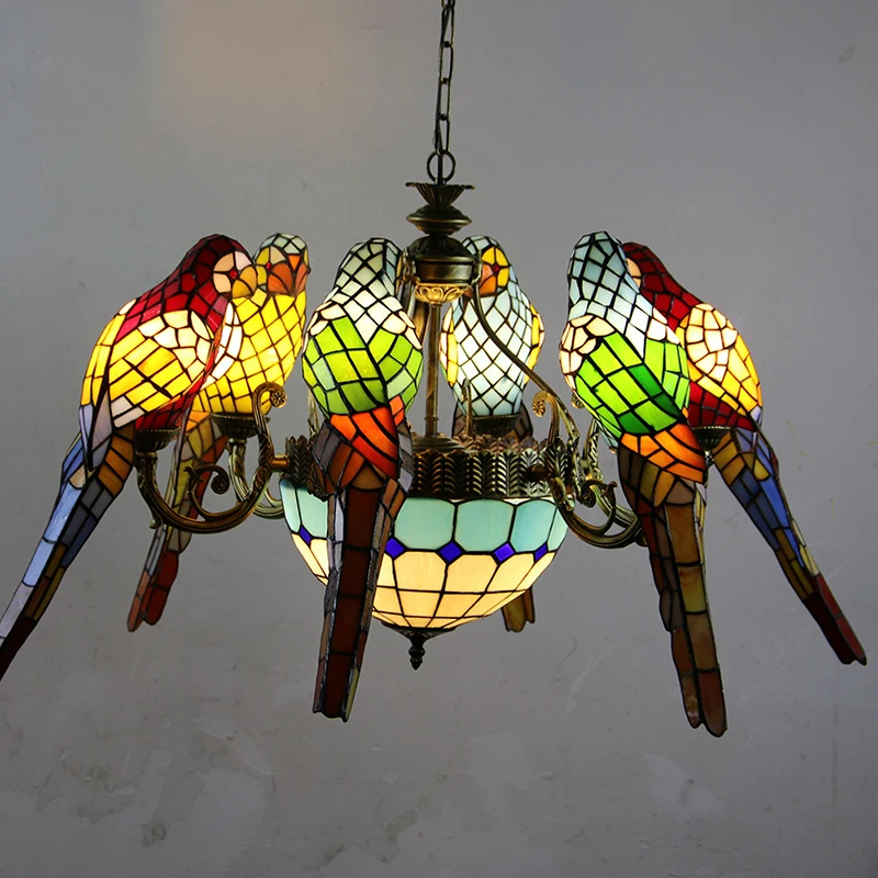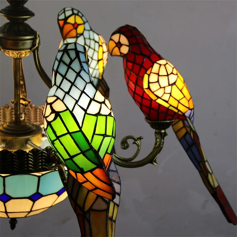 Le perroquet est un symbole fort de liberté et de spiritualité. Ce lustre trouvera donc toute sa place dans la maison de personnes ouvertes d'esprit et en quête de liberté et d'espace pour devenir qui ils sont. Ce lustre plaira également grandement aux enfants, qui seront fascinés par les motifs et les couleurs représentés sur cet objet de décoration.