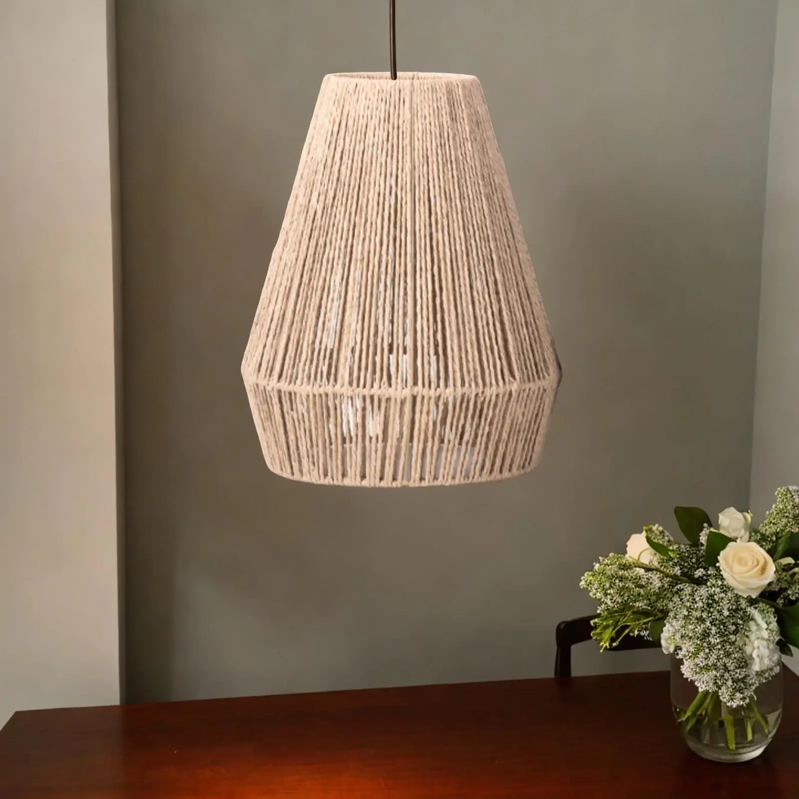 Il peut être installé dans le salon, la salle à manger, la chambre à coucher ou même dans un espace extérieur couvert pour ajouter une touche de caractère à votre environnement. Avec son design simple et épuré, ce lustre met en valeur la beauté naturelle de la corde tout en diffusant une lumière douce et agréable dans la pièce.