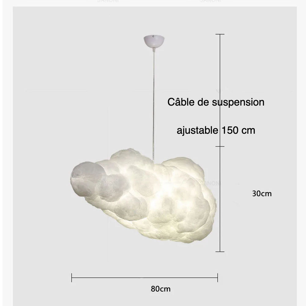 Ce lustre nuage design coton est conçu pour toutes les pièces de la maison et plus encore. C'est un objet décoratif et fonctionnel qui apportera beaucoup de poésie à la pièce dans laquelle il sera placé : que ce soit une chambre d'enfant ou d'adulte, un bureau ou un coin lecture, il apportera également de la sérénité et de l'apaisement.