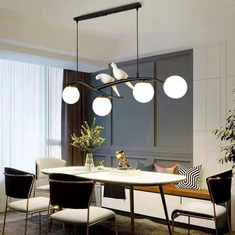 Vous recherchez un lustre moderne et original à la fois ? Laissez vous tentez par ce grand lustre moderne avec oiseaux. Ce modèle, doté de quatre suspensions, sera parfait pour bien éclairer votre salle de séjour ou votre pièce de vie. Aérien, chic et moderne, ce lustre distillera lumière et élégance dans la pièce !