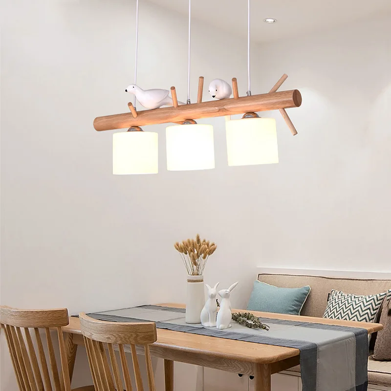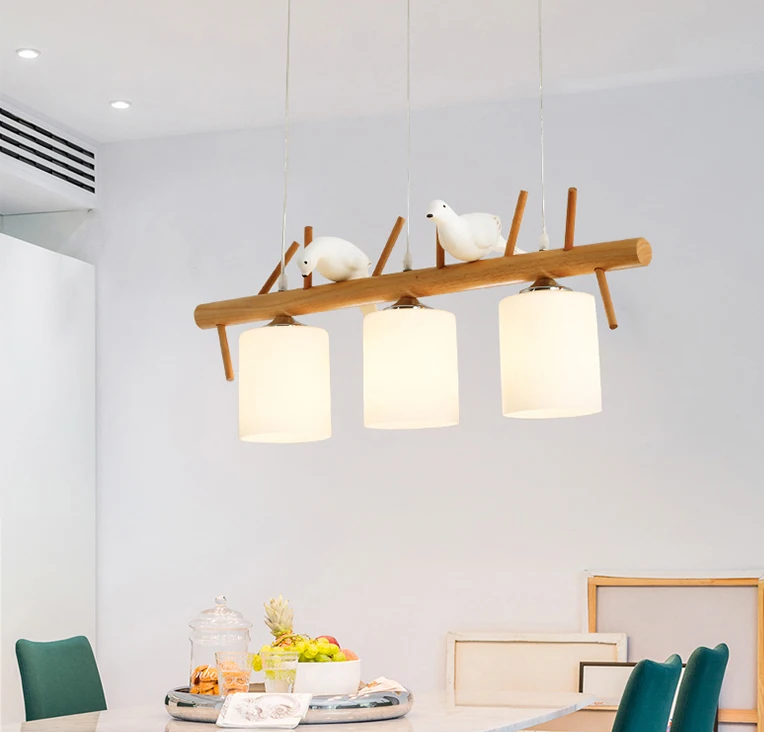 Lustre en bois massif avec oiseaux