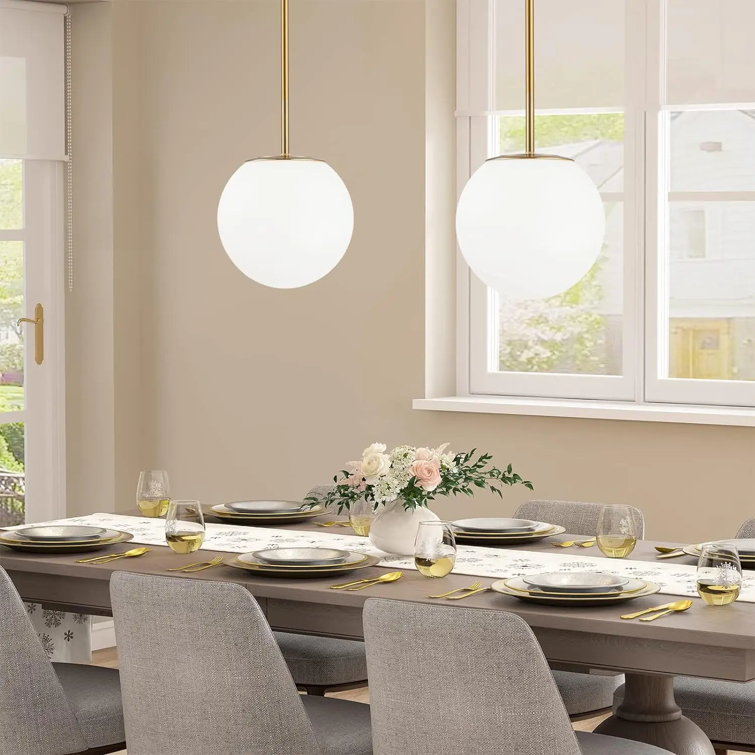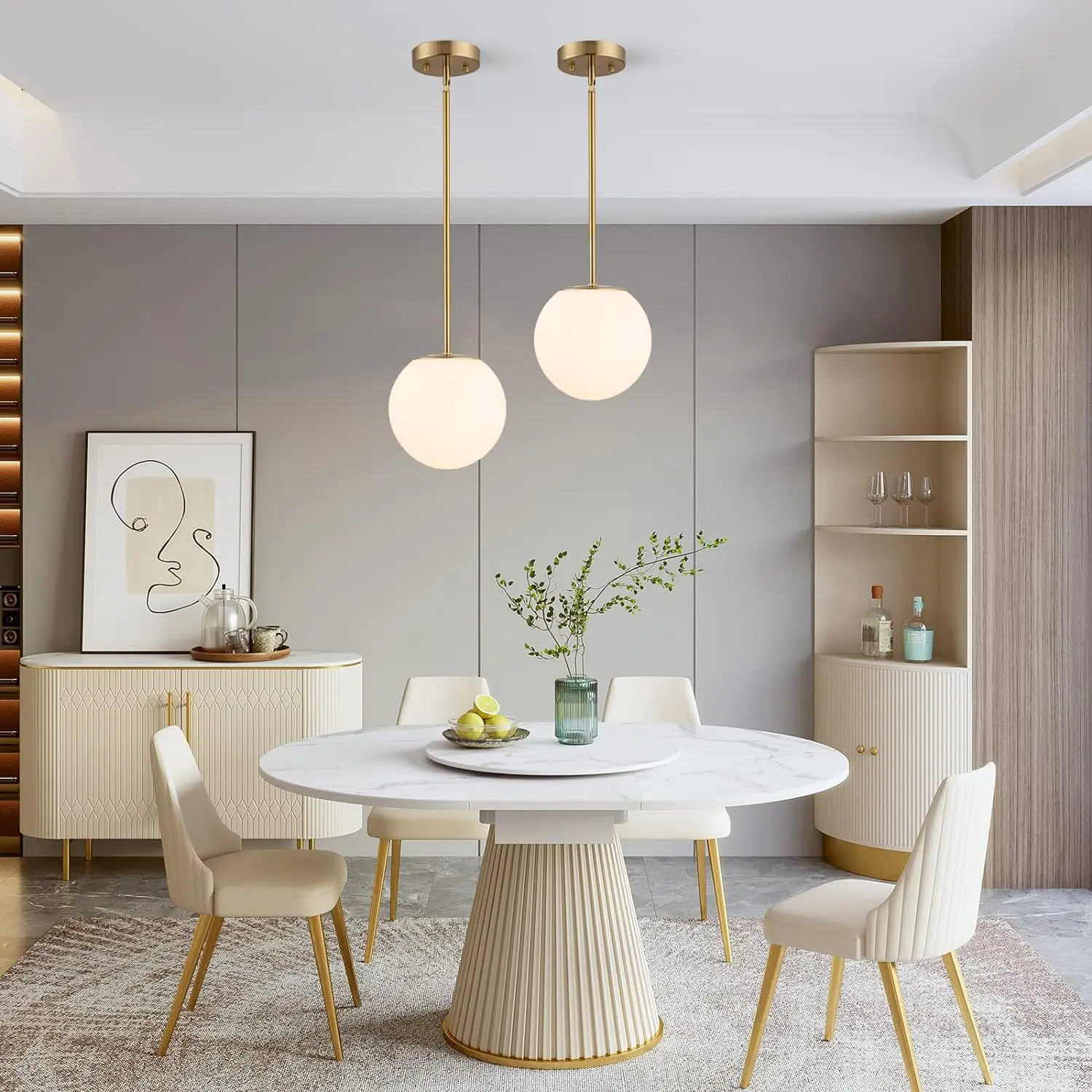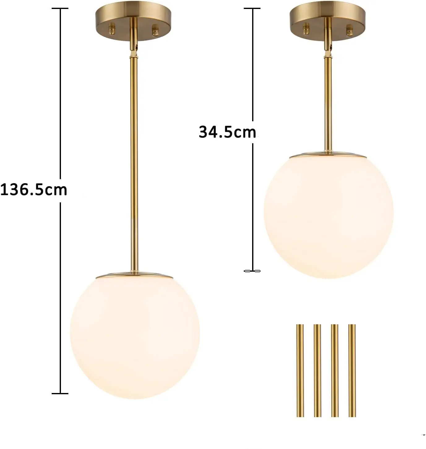 Selon la taille de vos pièces vous pouvez créer un joli ornement d'un ou plusieurs lustres boules. Vous pouvez aussi jouer avec les longueurs de la tige dorée pour personnaliser votre décoration. Offrez-vous le luxe et l'élégance du lustre opaline boule pour sublimer votre intérieur et créer une atmosphère unique et raffinée.