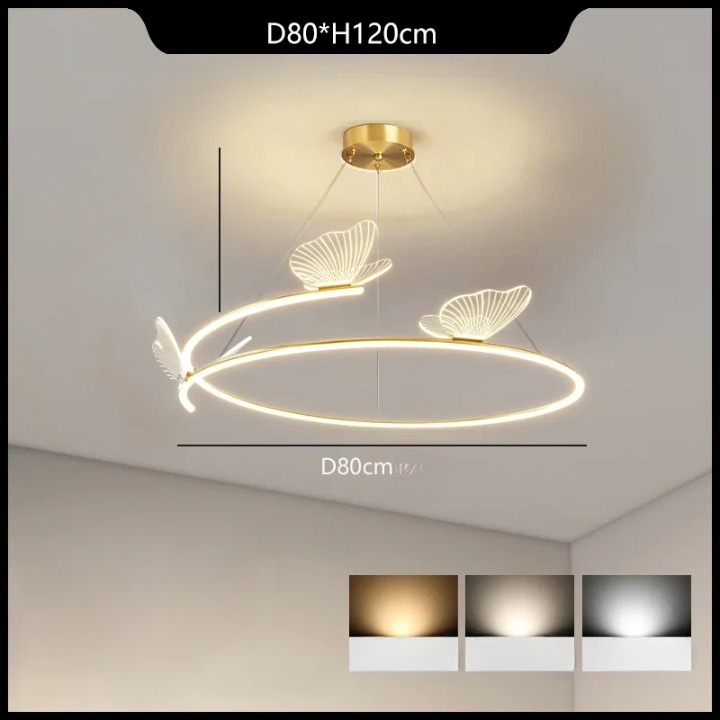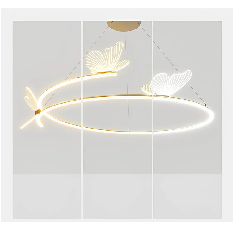 Les papillons sont délicatement posés sur cette ronde lumineuse ajoutant de la lumiére à l'ensemble. La structure du lustre est en métal et durable, assurant sa longévité et sa stabilité. Ce lustre est parfait pour illuminer et décorer votre salon, votre salle à manger, votre salon ou même votre chambre à coucher.