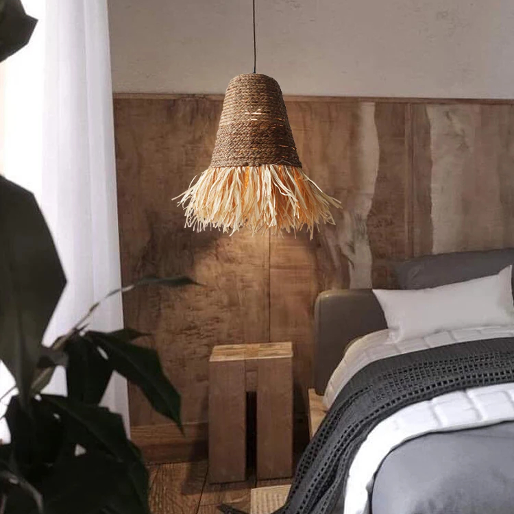Notre lustre en raphia et bambou est fait à la main à partir de matières naturelles. Il allie élégance et authenticité. Son tressage en bambou permet à la lumière d'être diffusée de façon douce et chaleureuse, créant une ambiance apaisante dans n'importe quelle pièce de votre maison. Les fils de raphia qui pendent ajoutent une touche de légèreté originale et tendance à ce luminaire unique.