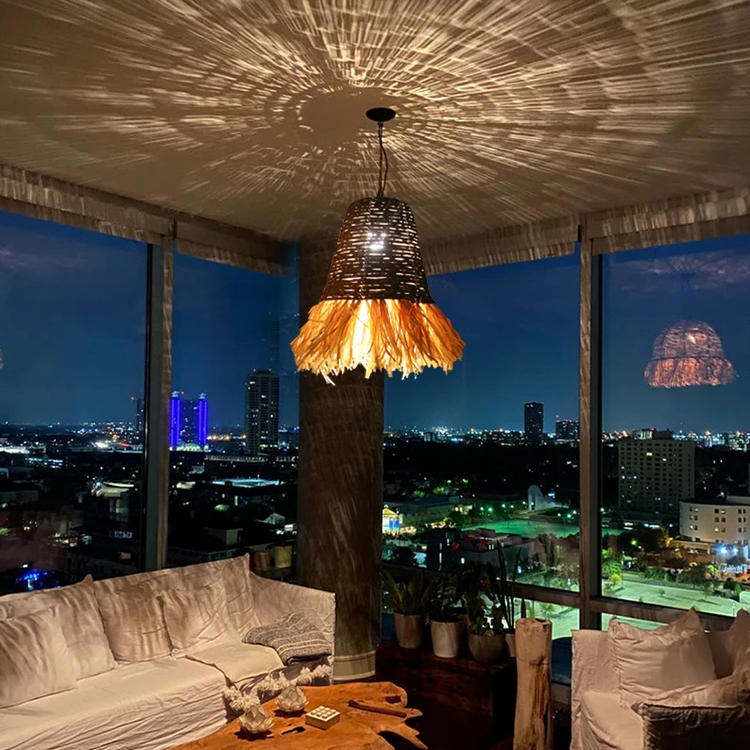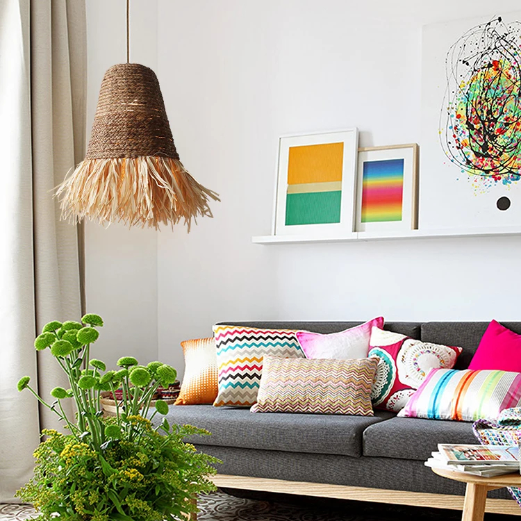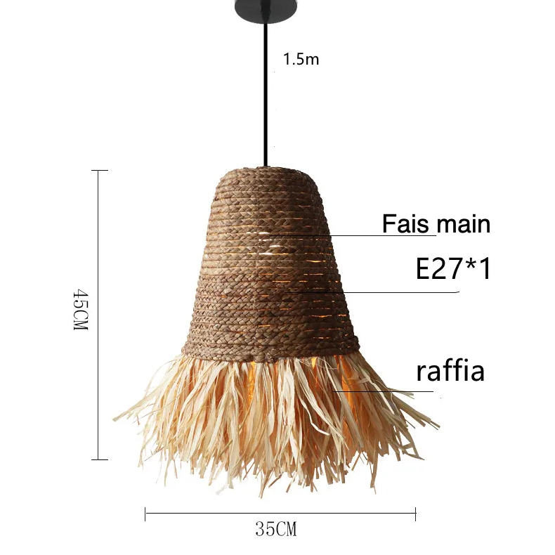 Notre lustre en raphia et bambou est parfait pour tous les espaces avec son petit format et la longueur du câble de sa suspension ajustable, jusqu'à 1 mètre 50. Accrochez-le au-dessus de votre table à manger, dans votre salon, dans votre chambre ou même sur votre terrasse pour créer un espace de vie harmonieux et accueillant. Il s'adapte à tous les intérieur et éclair une surface de 10 à 15 mètres carrés.