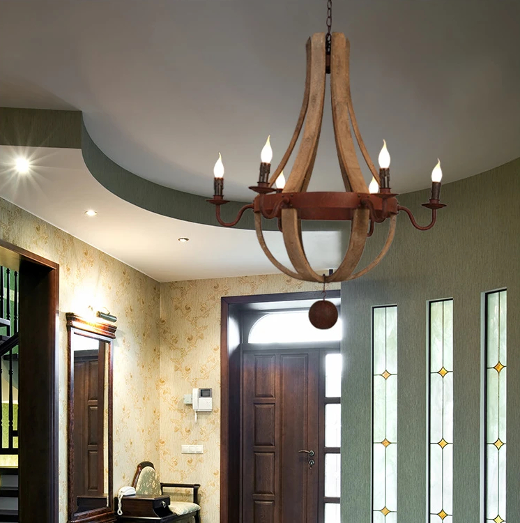 Si vous envisagez le lustre comme un véritable élément de décoration, ce modèle accrochera votre regard ! Confectionné en matières nobles : le bois et le métal, ce lustre de belle taille sera parfait pour les grandes cuisines, les pièces de vie ou même les chambres ! Ses six ampoules vous éclaireront parfaitement !