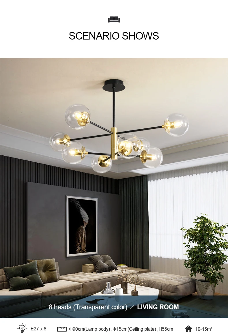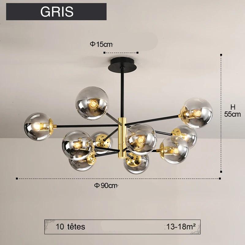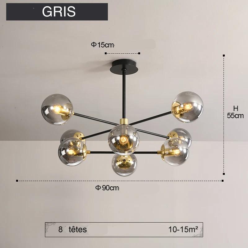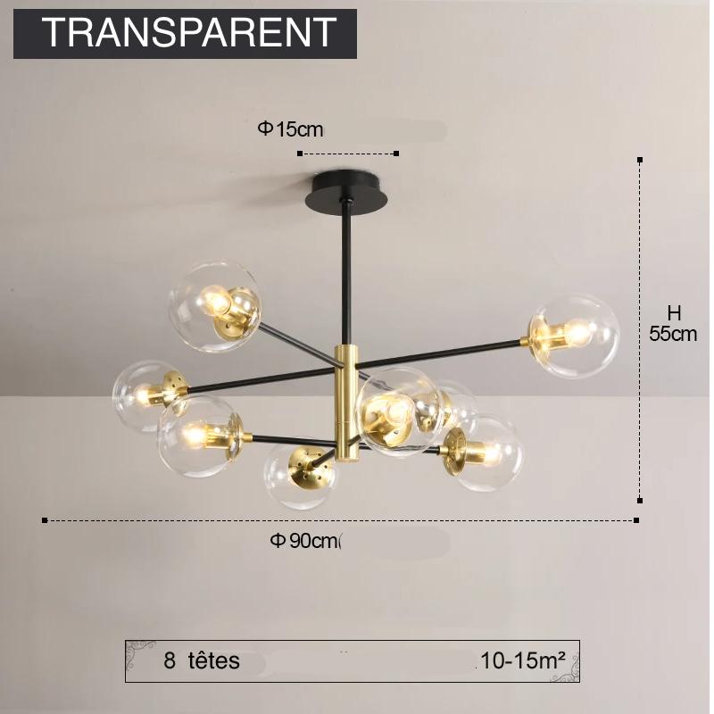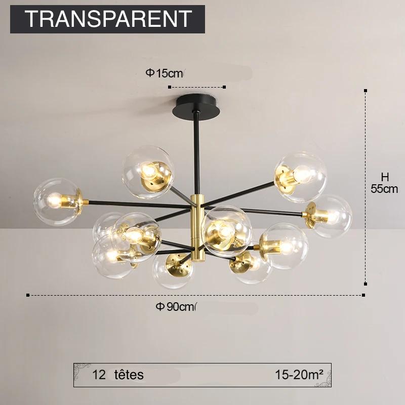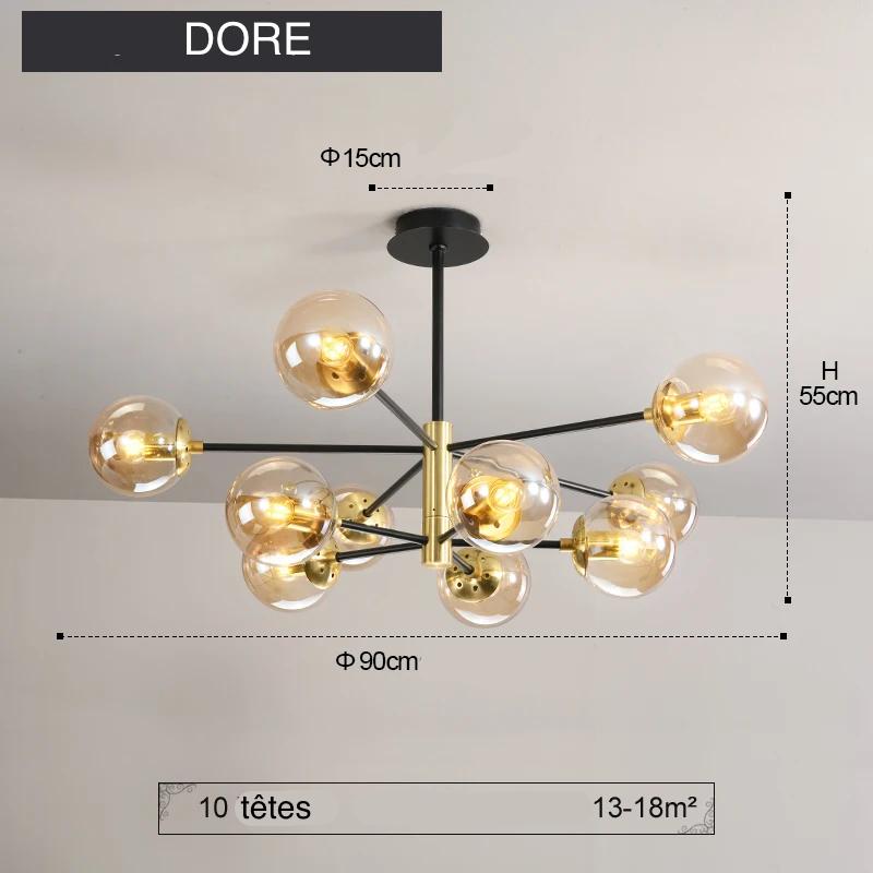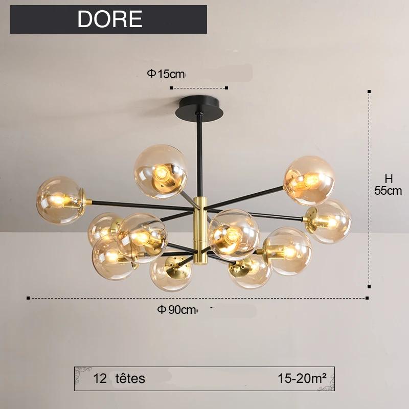 Ce lustre salon boules de verre est un objet de décoration autant qu’un luminaire : durable et élégant, à la forme originale, il apportera une touche chic et chaleureuse à votre intérieur, qu’il soit dans le séjour, la salle à manger ou le salon. Il est moderne et convient à tous les intérieurs contemporains.