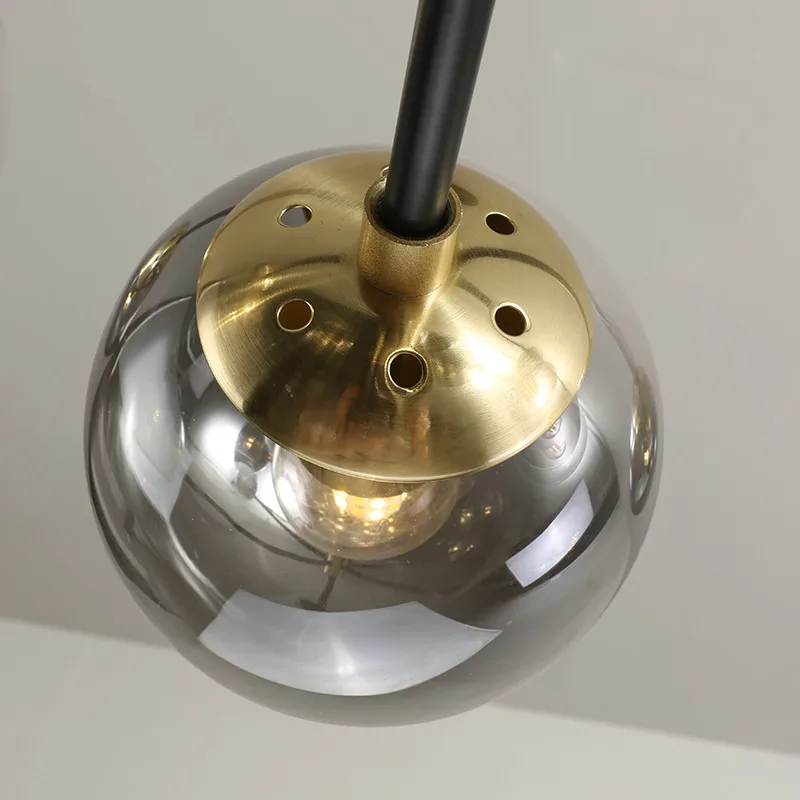 Ce lustre de salon à boules de verre est composé de tiges noires ornées de la tige dorée centrale : ce mélange apporte une touche luxueuse à ce luminaire. Vous avez du choix au niveau des tailles et au niveau des couleurs du verre afin que vous puissiez apporter des touches de lumière dans vos pièces en tenant compte de la superficie et du style de chacune.