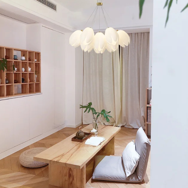 La tulipe est une fleur symbolique qui représente l'amour passionnel, la richesse et la royauté ! C'est une fleur appréciée pour sa délicatesse et sa fragilité. Placer un lustre à l'effigie de tulipes dans une pièce distillera assurément une ambiance cossue, chic et harmonieuse, tout en reflétant votre goût prononcé pour la nature !